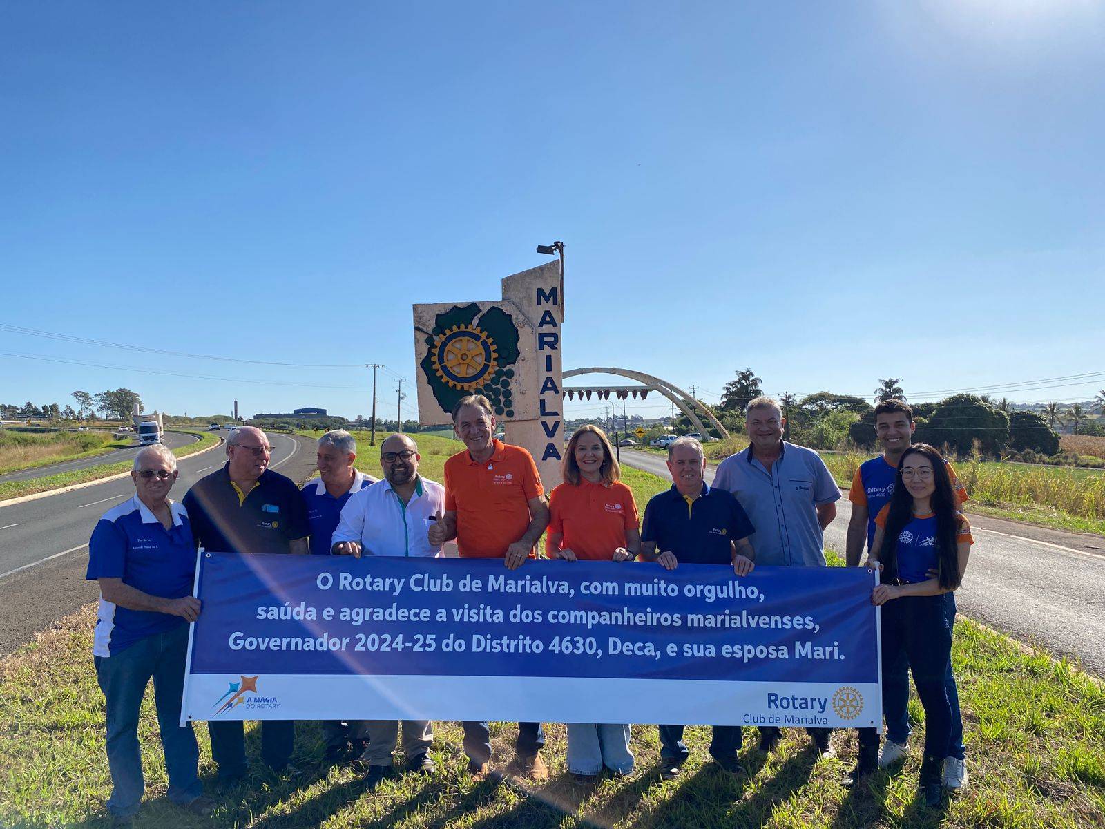 A recepção oficial do Governador Deca e sua esposa Mari aconteceu no Marco Rotário, localizado na entrada da cidade (saída para Mandaguari). Deca foi recebido pelo presidente Ademir Bocca e demais companheiros do clube. Este marco é um monumento presente em diversas cidades que simboliza a presença de um clube de Rotary naquela localidade. Curiosidade: Deca foi Prefeito de Marialva de 2009 a 2016 e, durante sua gestão, foi construído o monumento Parreiral de Uva, que está ao fundo dos registros do Marco Rotário. Marialva é considerada a capital da uva fina de mesa do estado devido à sua destacada produção e qualidade na viticultura.