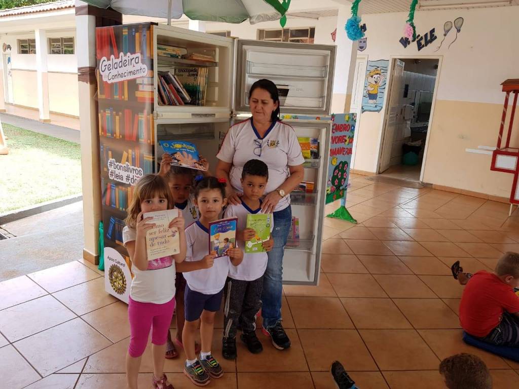 Já em Iguaraçu, de acordo com o presidente 2019-20, Valdemar Canavezi, “um rotariano teve a ideia de personalizar uma geladeira antiga, com os dizeres do Rotary. Ele a transformou em uma pequena biblioteca. Durante o nosso ano rotário, fizemos contato com as escolas e após convidarmos as diretoras para nossa reunião, colocamos a geladeira à disposição das escolas”.